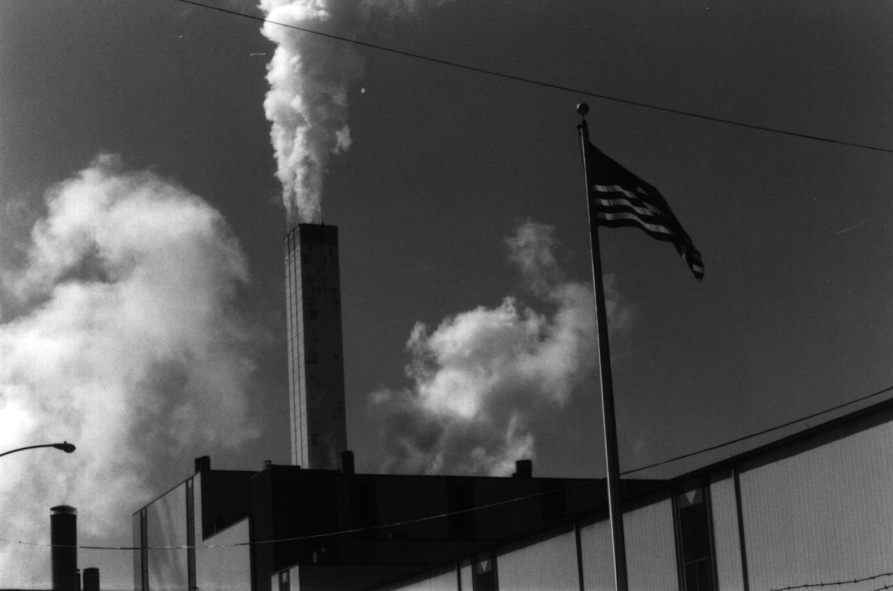 Incinerator Stack and American Flag